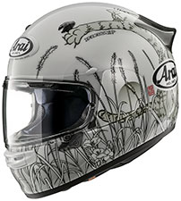 主材料は、通常のグラスファイバーより、6倍のコストのかかる高価な材料の最新のスーパーファイバーをアライが独占使用しています。通常のグラスファイバーよりも繊維密度を高め、引張り強度・圧縮強度ともに40%も高い特殊なグラスファイバーに、さらに改良を重ねた結果生まれたアライ独自の最新素材。「頭を護る性能」には欠かせない強靭で粘りのあるな帽体を構成する最適な素材です。