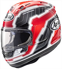 高速域での安定感と、高いかぶり心地で、Moto-GP、 F-1をはじめとするトップレーサーから高い評価を受けているアライのフィット感。そのかぶり心地の良さを、さらに向上させるために考案されたFCS(Facial Contour System/フェイシャル・コンター・システム)は、本来、頬部だけで支えていたシステムパッドを、『アゴ全体』含めて包み、安定させるという発想で開発された。システムパッド内にあるスプリング機能を持つベース板の形状を、人間の頬のかたちに合わせ、さらに『下アゴ』より包み込むような新しいフィット感を目指した。これにより、頬部を強く圧迫することなく、頭部とヘルメットの密着性を高め、走行中のブレや圧迫感のない新次元のかぶり心地となっている。しかも、着脱時にはスプリング材が作動し、スムーズな着脱が可能である。 緊急着脱システムのエマージェンシータブは、より判りやすい位置に引出しタイプに変更した新開発システムパッド。
