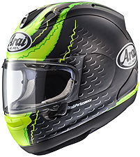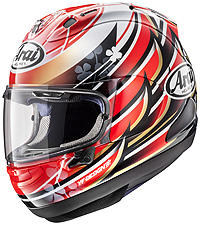 帽体裾部までまわりこむハイパーリブは、自動車のバンパーのような緩衝装置の役割を果たし、側面からの耐圧性能を向上させ、より帽体が強固になった。「外側のシェルは強固に、頭をじかに包む緩衝ライナーはより柔らかく」というヘルメットの理想に、アライはまた一歩近付いた。また、サイドエキゾーストとの一体化したフォルムは、首元の風の流れをスムーズにしている。