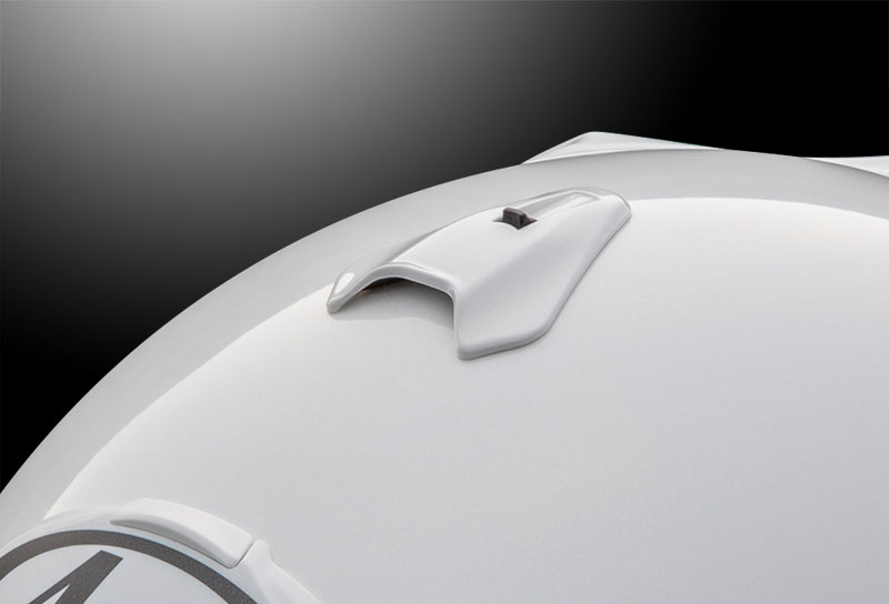 〈アストロGX〉に採用されたGTスポイラーをベースに、さらなる進化を遂げたリアダクト。空力性能を徹底的に見直すことで、高速走行時における頭部のブレを抑え、ヘルメットの安定性を向上させています。加えて、後方に発生しやすい乱気流を効果的にコントロールすることで、空気抵抗の低減とともに、ライダーの疲労を軽減。長時間のライディングにおいても集中力を維持しやすく、快適な走行をサポートします。
