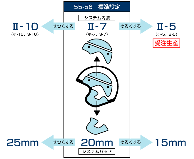 …受注生産で承ります。詳しくは、お買い求めの販売店か、弊社「ヘルメット講習会」修了店までお問い合わせください。