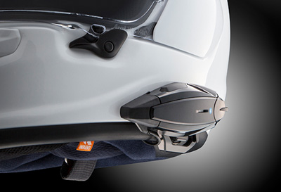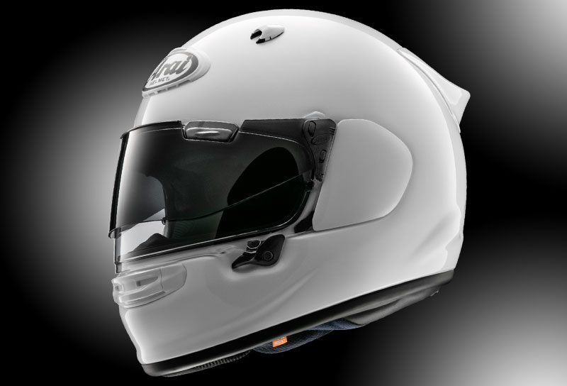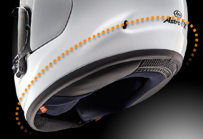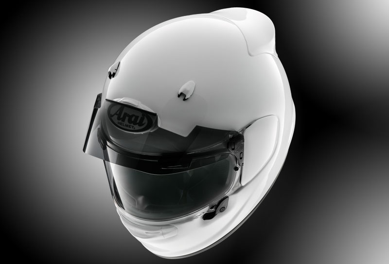 いかなるヘルメットでも吸収できるエネルギーの大きさには限りがあるため、現実の事例では大きなエネルギーはかわすしかありません。だから形状も衝撃をかわしやすい滑らかなフォルムと、強靭な帽体をアライは追求してきました。今までシールド取付け部はその開閉のために、わずかな段差を必要としてました。より衝撃をかわす性能を高めるため、実績あるスネル規格のテストラインを目安にシールド取付け部分を24mm下げて、ヘルメット側頭部をより滑らかなフォルムを実現させました。