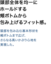 | システムパッド内に頬への密着性を高めるベース板を設け、圧迫することなく包み上げるフィット感を実現した。 |