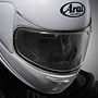 万が一の転倒などのアクシデントによる衝撃からシールドを保護する。薄型化により風切り音も低減している。