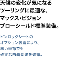 マックス・ビジョンシールドに、新たにブローダクトを搭載。オールシーズン対応のシールドへと進化させた。