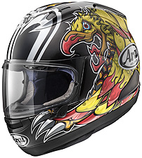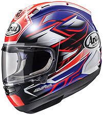 帽体裾部までまわりこむハイパーリブは、自動車のバンパーのような緩衝装置の役割を果たし、側面からの耐圧性能を向上させ、より帽体が強固になった。「外側のシェルは強固に、頭をじかに包む緩衝ライナーはより柔らかく」というヘルメットの理想に、アライはまた一歩近付いた。また、サイドエキゾーストとの一体化したフォルムは、首元の風の流れをスムーズにしている。