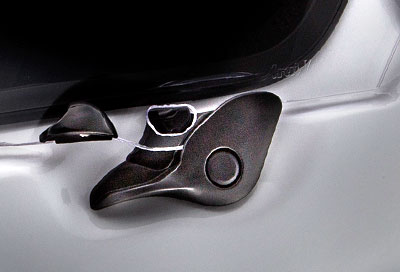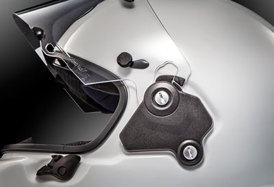 フォーミュラカー用〈GP-6〉で採用された、レバーによる強固なシールドロックシステム