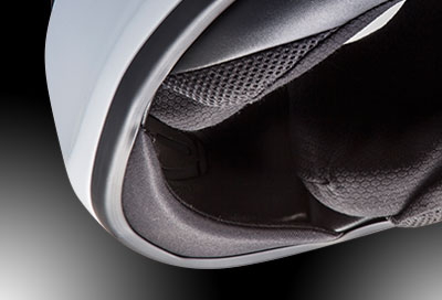 厚みのあるパッドにより、ヘルメット後方下部と、ライダーの首との隙間を埋めることで、高速走行時における巻き込み風や、耳障りな風きり音を軽減。静粛性、フィット感ともに優れているため、かぶり心地が良く、走りの集中力を持続させる。
