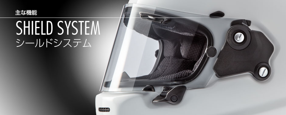 不意の衝撃によるシールドの開放を防ぐロック機能を強化。レバーも大型ロックになり、グローブを着用しての操作もし易くなった。