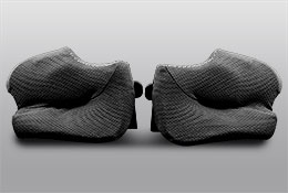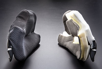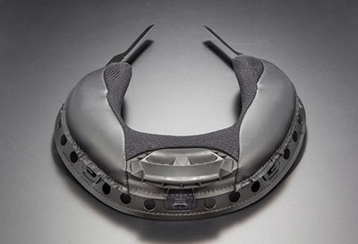 システムパッド内にインターコムスピーカが収納できるスペースを確保。スピーカの取付けをユーザー自身で容易にカスタムできるよう適切な位置に合わせられ、納まりがよく配線もしやすい。さらに、スピーカホールは楕円形にし、適切な耳の穴の位置に合わせられるようにしている。インターコムスピーカを取り付けた際に、耳とスピーカを平行に収まるようにし、耳たぶに当たらないようにすることで窮屈さを軽減し、より快適なフィット感を高めている。