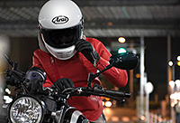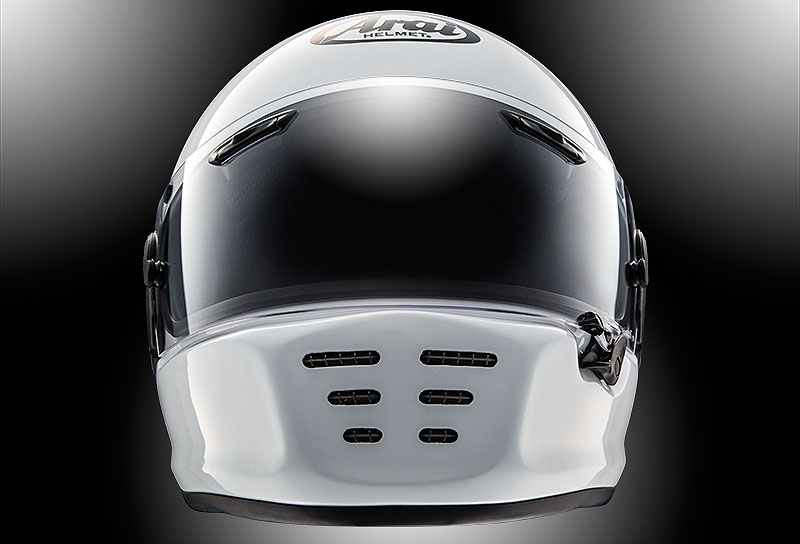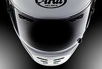 帽体裾部までまわりこむハイパーリブは、自動車のバンパーのような緩衝装置の役割を果たし、側面からの耐圧性能を向上させ、より帽体が強固になった。「外側のシェルは強固に、頭をじかに包む緩衝ライナーはより柔らかく」というヘルメットの理想に、アライはまた一歩近付いた。また、サイドエキゾーストとの一体化したフォルムは、首元の風の流れをスムーズにしている。