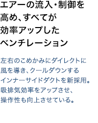 『サイドエキゾーストダクト3』との相乗効果で、下部の排気効率がさらに向上。負圧によって強力に排出する。 |