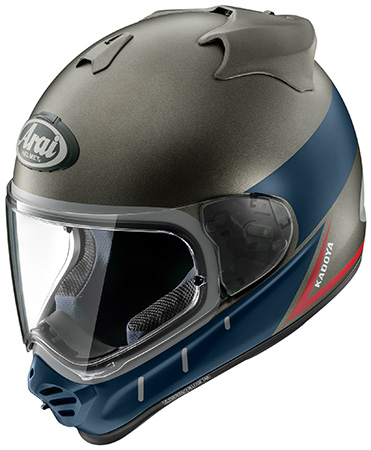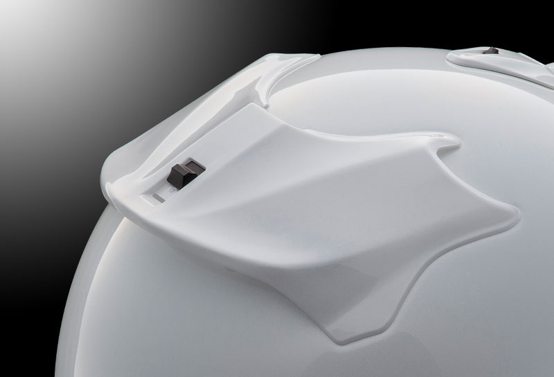 また、ゴーグル装着時にはバンドを固定するストッパーとしても活躍し、オフロードライディングにも対応。万一、スポイラー部に衝撃が加わった場合でも、引っかかりを残さず自然に外れる構造とし、アライが大切にする「かわす性能」を妨げない、丸く滑らかなシェル形状との一体設計となっています。