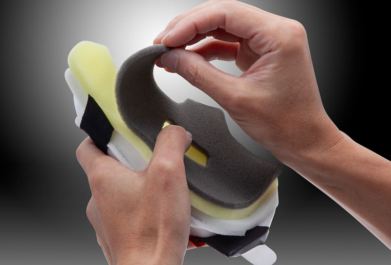 アライの多段発泡ライナーは、部位により細かくその硬度を変化させています。受ける面積により硬度を変化させることで、「かわす性能」を活かすフォルムを追求し続けることが可能となるのです。そして、一体成形の多段発泡ライナーは、硬度の変化に途切れることなく、衝撃を連続して受け止めることができるので、組み合わせ式のライナーよりも、実際の衝撃で有効に働くことができます。