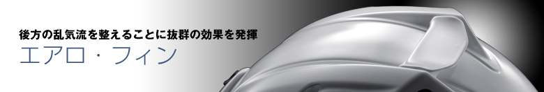 レースでの最高速を目指して設計された『エアロ・フィン』は、後方の乱気流を整えることに抜群の効果を発揮する。静粛性と吸入効率を格段に高めた『レーシングディフューザー』との相乗効果により、ヘルメットのグラつきを抑え、安定性を向上。その結果、スピードアップに貢献している。