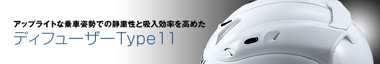 『エアーイン・スタビライザーノズル』の装備と、『エアーインポート』形状の見直しにより、よりアップライトな乗車姿勢での静粛性とベンチレーション効率を高めた、新設計『ディフューザーType11』。左右ディフューザー間のエアロスタビライザーは、粘性流動体である空気をヘルメット表面より速やかに剥離し、走行中、ヘルメットの安定性を向上させます。ディフューザーおよび『デルタダクト5』のシャッタースイッチは大型化され、厚手のグローブをしたままでも、より確実な操作が可能となりました。