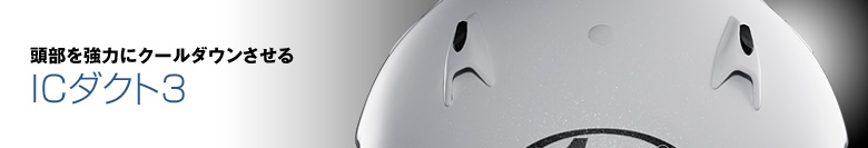 走行時に発生する風を、ダクトからヘルメット内に取り入れ、頭部を強力にクールダウンさせる『ICダクト3』。エアー流入量を拡大させた上でのスリム設計により、空気抵抗を抑え、静粛性も高まりました。