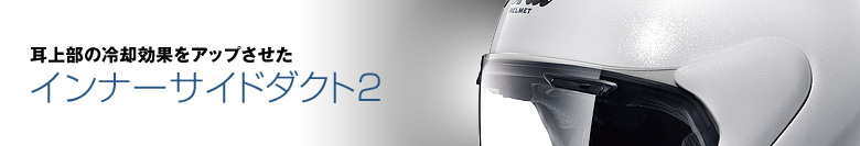 ブローシャッターからのエアーを左右のこめかみ方向へ誘導する『インナーサイドダクト2』は、これまでにない爽快感が得られる新しいベンチレーション。こもりがちだった耳上部への冷却効果を高めることにより、頭部全体をクールダウンできるようになりました。