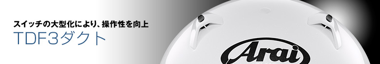 走行時に発生する風を、ダクトからヘルメット内に取り入れ、頭部を強力にクールダウンさせる『TDF3ダクト』。エアー流入量を拡大させた上でのスリム設計により、空気抵抗を抑え、静粛性も高まりました。