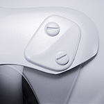 高速時の強度を確保するため、リブを設け変形に強くした『TX2バイザー』。排気口の位置も変更し、風の抵抗を軽減することでバイザーのブレをなくし、安定した走行を可能にしました。さらに、『TX2バイザーワッシャー』は、高速域での前方からの風圧によるバイザーの変形を抑え、安定性を向上するために、バイザーを固定する面積を前方に広く確保。厚みも抑え、空気抵抗や風切り音の軽減を実現しました。