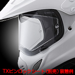 TXピンロックシート(別売)をシールドに装着すれば強力な防曇効果を発揮します。TXピンロックシートに加工されたシリコンシールをシールドに密着させ、シールド内側にダブルレンズ効果をもたらします。