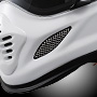 口元サイドのスリットは、適度なクールダウンと負圧による息ごもりを解消、シールドの曇りも軽減させる。 |