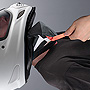 システムパッドのタブを引くだけで、万一の際でも第三者によるヘルメットの脱帽がスムーズに。 |