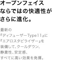 静粛性を高めつつ、さらにエアー流入量を拡大。『ディフューザーType10』とのコンビネーションで強力にクールダウンする。
