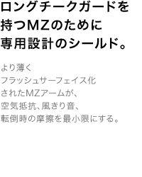 より薄型化されたMZアームは、フラッシュサーフェイス設計により、空気抵抗・風きり音を低減している。