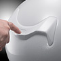 左右連動開閉するスイッチは操作感を向上。高速走行時には、ヘルメットを安定させるスポイラー効果もある。
