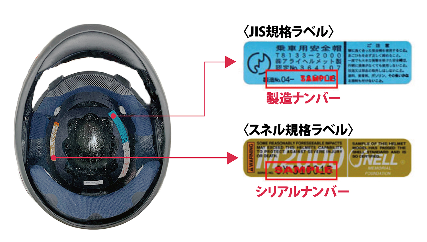 ※ご使用中のヘルメットに関するお問合せは「モデル名」「カラー」「サイズ」およびヘルメット内側に記載の「製造年月日」「JIS 規格製造ナンバー 」をご記入下さい。(スネル規格品の場合「スネル規格シリアルナンバー」もご記入お願いします。