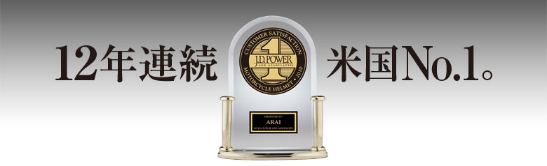 顧客満足度に関する調査・コンサルティングの国際的な専門機関であるJ.D. パワー・アンド・アソシエイツが実施する『モーターサイクル・ヘルメット米国顧客満足度調査』において、アライヘルメットは、12年連続第1位を獲得しています。調査では、「かぶり心地」「ベンチレーション」「静粛性」「防曇性」など、11項目の性能やデザインに関するユーザー評価をもとに、総合満足度スコアが算出されます。