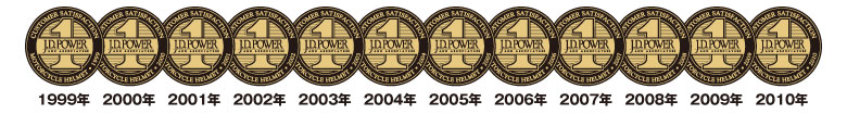 出典:J.D. パワー・アンド・アソシエイツ1999〜2010年米国モーターサイクル・ヘルメット顧客満足度調査SM。2010年調査は2009年8月から10月にかけて実施。モーターサイクル・ヘルメット9ブランドについて2009年モデルの米国バイクオーナー計4,800名以上の実際の使用経験および知覚に基づく評価により数値スコアを算出した結果。個人により評価は異なる可能性があります。www.jdpower.com |