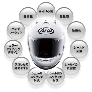もちろんアライヘルメットは、これに満足することなく、今後もさらなる品質向上を目指すとともに、ご購入いただいたすべてのお客様に心からご満足いただける「最高品質」を使命としてまいります。 |